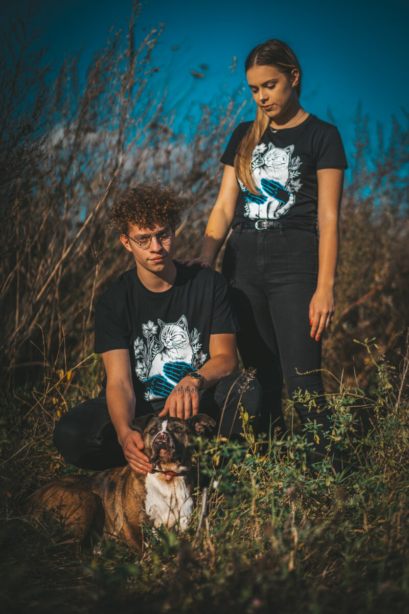 Piękne wzory zostały zaprojektowane z myślą, by pomagać zwierzętom. Zysk ze sprzedaży zasila skarbonkę zwierzaczków z naszego schroniska. Dostępne w wersji damskiej i męskiej we wzorach pies i kot.